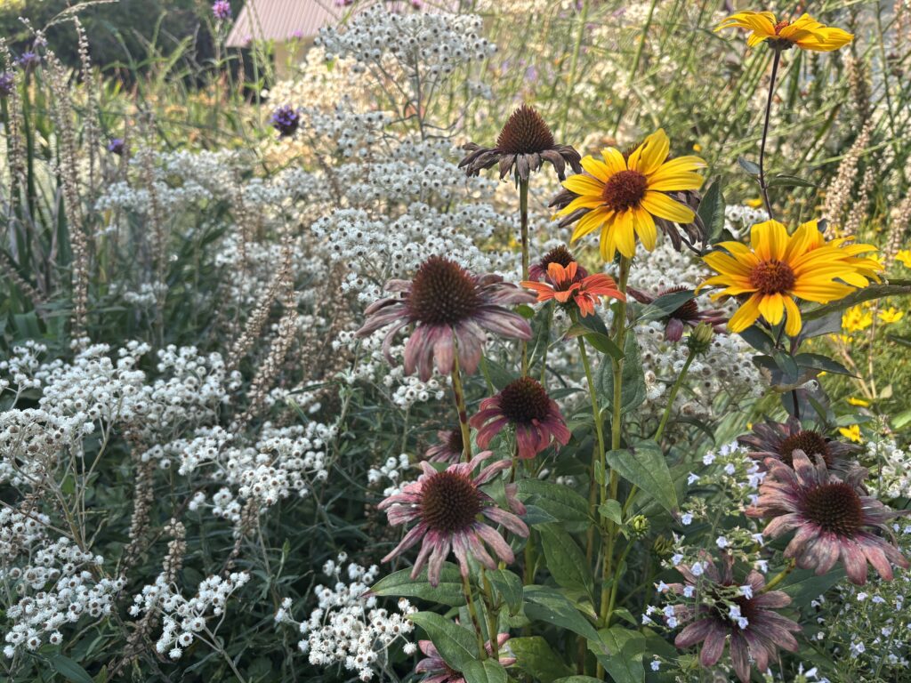 These prompts invited both practical and emotional responses, everything from requests for specific plants and seating to emotions folks hoped to feel in this space. The results directly informed layout decisions, plant selection, and more. The most surprising piece, that I found, from these workshops is that I would’ve thought participants wanted food growing opportunities- like raised beds or fruit trees- and that was NOT the case. I distinctly remember one person sharing, “I don’t want to enter this space and see work.” Instead, it became clear people wanted a space for reflection or pause, and they wanted to see pollinators and birds, and they wanted a space that felt immersive. That led us to choosing different heights in plants, and structuring seating in particular places.